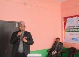 Mr. Prakash Ojha, Chairperson of Bhaudikali Rural Municipality, sharing his remarks during the event.